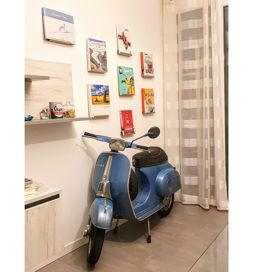 Ed ha anche una Vespa 50 Special parcheggiata in salotto, circondata da oggetti, libri e memorabilia tutti firmati Vespa; e va detto che della sua GTS è particolarmente orgoglioso. L'ha usata fino a metà gennaio circa, riparandola lui stesso quando possibile, continuando a cambiare pezzi; e non perché gli manchino le disponibilità per acquistare un nuovo scooter, ma solo per una forte affezione. Finché la Vespa ha alzato bandiera bianca dopo aver percorso una marea di chilometri per un decennio… E Matteo ha subito acquistato un’altra Vespa (sempre GTS, sempre rossa), mandando finalmente in pensione, congedata con onore, la prima GTS che rimarrà in garage.