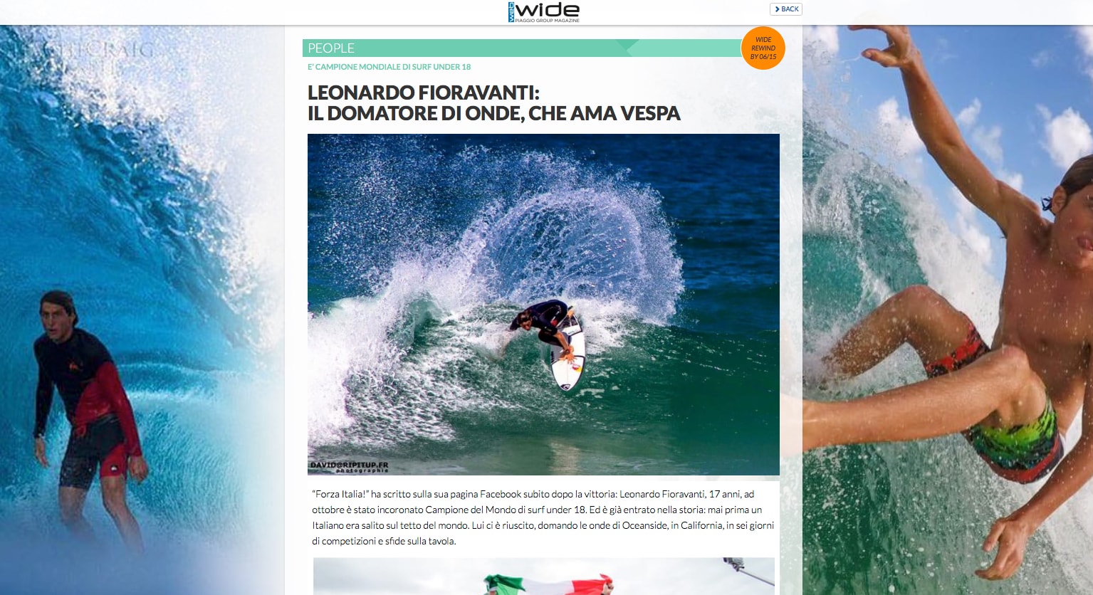 Nel 2015 Wide magazine gli dedicò un articolo, che qui vi riproponiamo. Il giovanissimo Leonardo, allora, fu anche protagonista di una web serie (2013) intitolata “I surf Italian” con Vespa co-protagonista del trailer.