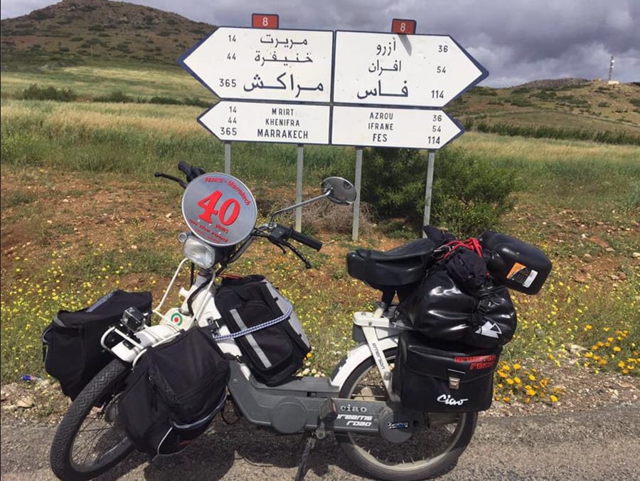 Emerson è partito perfettamente organizzato, con veicolo equipaggiato fin nei dettagli, con placca “celebrativa” anteriore, “targa” con il suo nome e adesivo della bandiera italiana, casco personalizzato. Ricorda ancora: “Nel 1976 non c’erano telefoni cellulari, era difficile comunicare, e andare fino in Marocco è stata davvero un’avventura. All’epoca, segnata in Italia da difficili momenti politici e sociali, io ero un rock ‘n roll boy: ascoltavo musica rock e sognavo avventure. Certo è bello viaggiare in moto, ma basta un Ciao per andare, con l’aria sul viso, alla scoperta di luoghi e popoli, profumi ed esperienze, in compagnia dei propri pensieri”. Emerson è un viaggiatore su due ruote molto esperto, ma anche molto attento alla sicurezza: “Infatti, anche 40 anni fa, quando ancora non era obbligatorio, già viaggiavo con il casco in testa”. Un bell’esempio per i giovani, anche per questo.