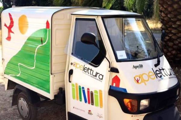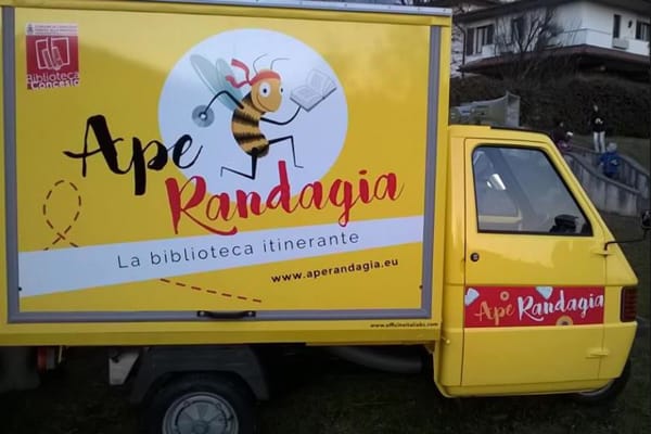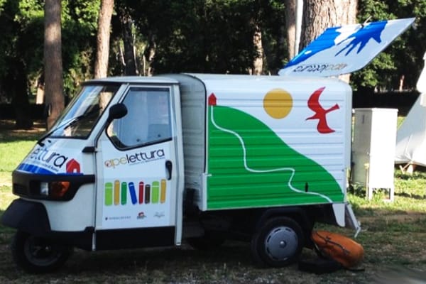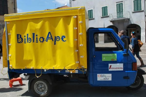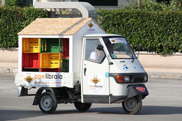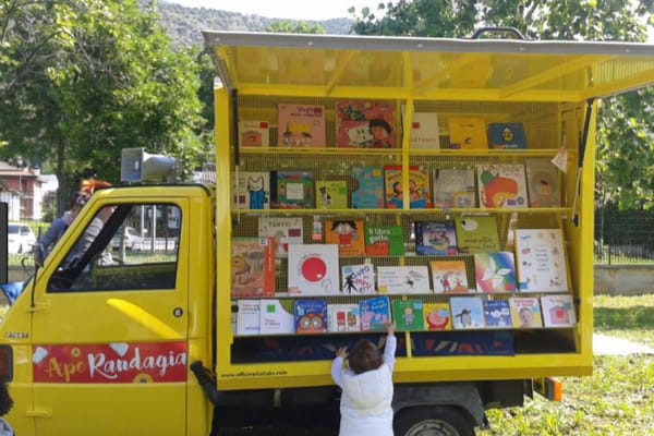E ancora, dal 2015 è attiva l’Ape Randagia di Concesio (Brescia), dotata di connessione internet e gps: biblioteca itinerante in squillante livrea gialla, che gira tra scuole, piazze, parchi e mercati.