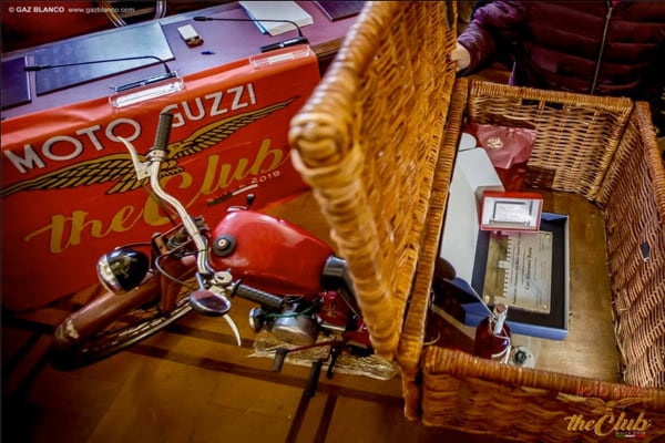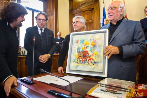 Giovanni Rana ha raccontato la sua straordinaria storia di imprenditore durante la cerimonia, molto partecipata; poi il Presidente di MGTC, Francesco Zarbano, ha donato al cav. Rana una targa e la tessera di socio, nonché un dipinto che lo ritrae insieme con l’amato Guzzino, realizzato dall’artista cremonese Guido Nolli. I doni sono stati inseriti nella cesta del Guzzino, quella che 60 anni fa conteneva tortellini e tagliatelle fresche che Giovanni portava nelle case della provincia veronese. Sempre in sella, a macinare chilometri e a distribuire buon cibo e buon umore agli italiani.