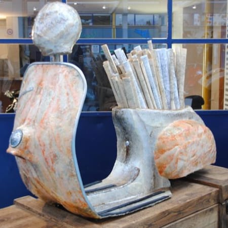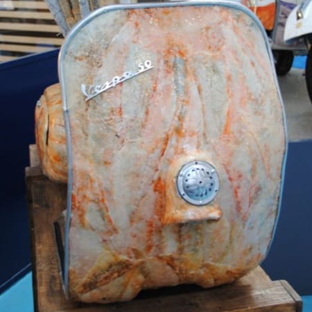 E’ la creazione (2012) di Gianni Depaoli: una scocca di Vespa rivestita con pelle di pesce. Fa parte del progetto Organic Trash Art, che valorizza lo scarto organico utilizzandolo per creare opere capaci di sensibilizzare all’ecosostenibilità e alla biodiversità.