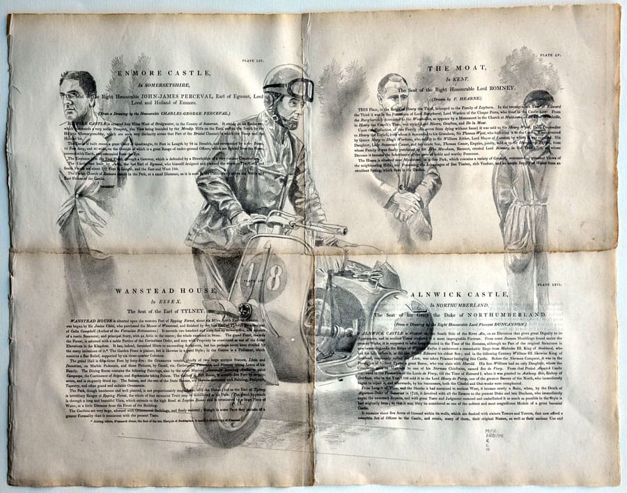 Marco Arduini, “Partenza per la 6 Giorni, 1951”, graffite su carta antica del 1814, 56x44 cm, collezione privata