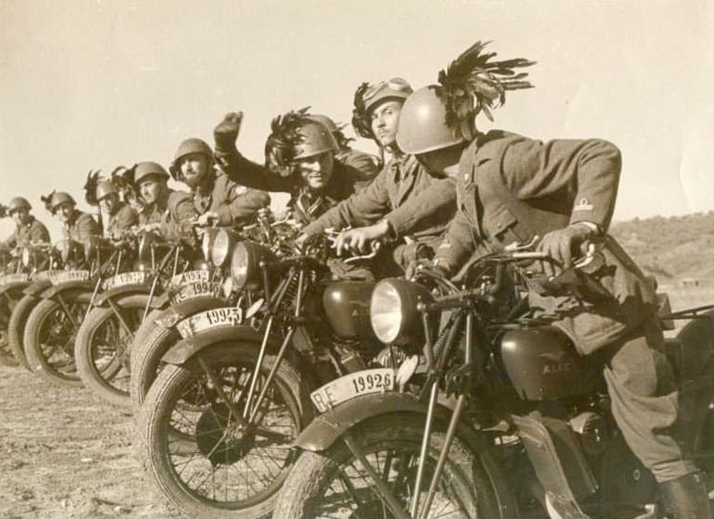 Le prime apparizioni di Moto Guzzi nel cinema risalgono alle pellicole del neo-realismo italiano degli anni ’40 e dell’immediato Dopoguerra, come “Un americano a Roma” (1954) con Alberto Sordi, diretto da Stefano Vanzina (Steno). In quella fase storica i modelli Falcone, Airone e Alce – allora in dotazione alle forze dell’ordine e all’esercito – compaiono spesso nei film dell’epoca, guidati appunto da militari, poliziotti, vigili urbani. Come i bersaglieri del film “El Alamein”, in sella alle Alce.