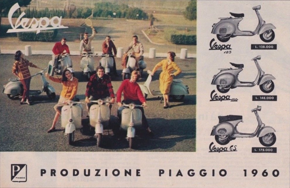 Una curiosità: la gamma Vespa del 1960, in questo annuncio pubblicitario dell’epoca.
