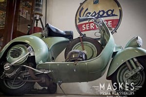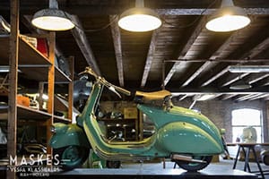 Quando aveva sei anni, Peter Maas (“Maske” per gli amici) prese di nascosto la chiave del garage di suo nonno e si intrufolò. Entrando, restò affascinato dagli scaffali pieni di carburatori e candele, dalle vecchie immagini delle gare del nonno sul circuito di Assen e, soprattutto, dalla Vespa. Da quel momento in poi, Peter fu ossessionato dal fascino delle vecchie cose, e in particolare delle vecchie cose motorizzate a due ruote. All’età di 16 anni Peter si comprò una Vespa PK 50. Da lì, una Vespa tira l'altra e così, sin dal 2006, lo scooter italiano è diventato la sua vita e il centro del suo lavoro: acquista, vende e restaura Vespa nel suo garage-shop-showroom “Maskes – Vespa Klassiekers” di Rijen in Olanda, dove vive. E’ molto fiero, in particolare, della sua GS 160 originale, tra i modelli più belli della gamma Vespa degli anni ’60, l’epoca vespistica preferita da Mass.