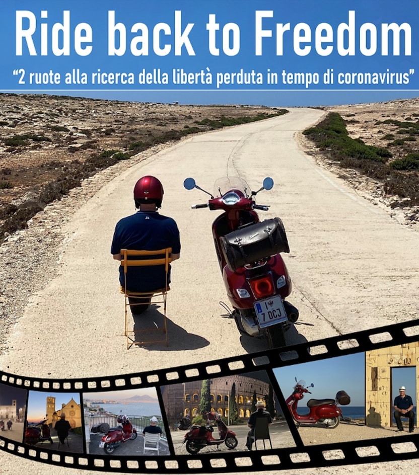 “Vado in moto da quando avevo 16 anni, ma fu solo al mio cinquantesimo compleanno che mi sono regalato una Vespa 250 che poi, poco prima della pandemia e il conseguente docufilm, è diventata una 300 Touring ultimo modello. Difficile dirlo ma credo che l’idea per questo docufilm sarebbe nata comunque… ma visto che il tema trainante del film è la ricerca della libertà perduta, nessuno altro mezzo di trasporto avrebbe potuto interpretare meglio questo leitmotiv”.