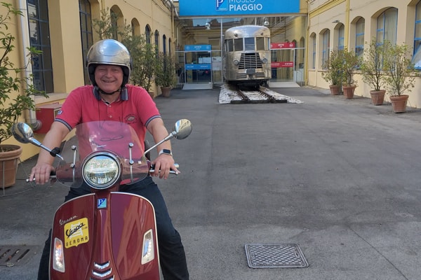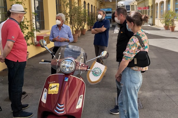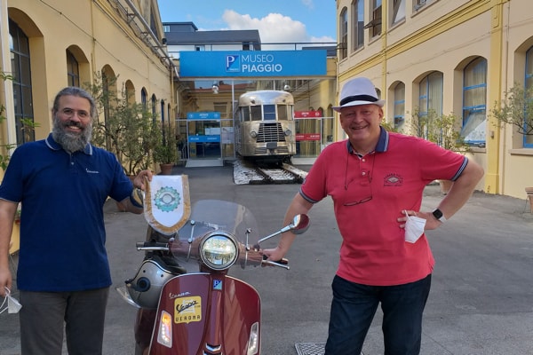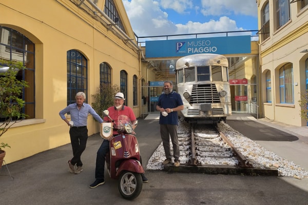 Il regista è stato di recente ospite al Museo Piaggio di Pontedera (Pisa), in due occasioni: a giugno, insieme con Loris Danielli (foto sopra, accolti dal Presidente della Fondazione Piaggio Riccardo Costagliola e da Marco Manzoli/Vespa World Club), e a luglio con il produttore Roberto Bessi (qui insieme nell’area esposizione veicoli/Piaggio Group/Stabilimento di Pontedera).