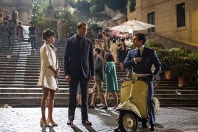 U.N.C.L.E. Official TrailerSono protagonisti del film i giovani attori emergenti Henry Cavill e Armie Hammer, che sfrecciano per le vie di Roma in sella alla Vespa.