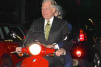 L’ultimo film di Guy Ritchie “Operazione U.N.C.L.E.” è stato un successo al botteghino, anche per la suggestiva ambientazione vintage, evocativa delle atmosfere degli Anni 60, e girato in parte a Roma. Dunque, non poteva mancare la Vespa, co-protagonista di decine e decine di film e da sempre amata dai Vip. Così, a Londra il regista Guy Ritchie (ex-marito di Madonna), si è presentato sul red carpet per il lancio del suo ultimo film con la neo-moglie, la modella inglese Jacqui Ainsley, ed hanno posato insieme su una Vespa d’epoca, la stessa usata nel film. Lei si è messa scherzosamente alla guida, emulando Audrey Hepburn sulla 125 degli anni Cinquanta, nel film cult “Vacanze Romane”, con Gregory Peck.