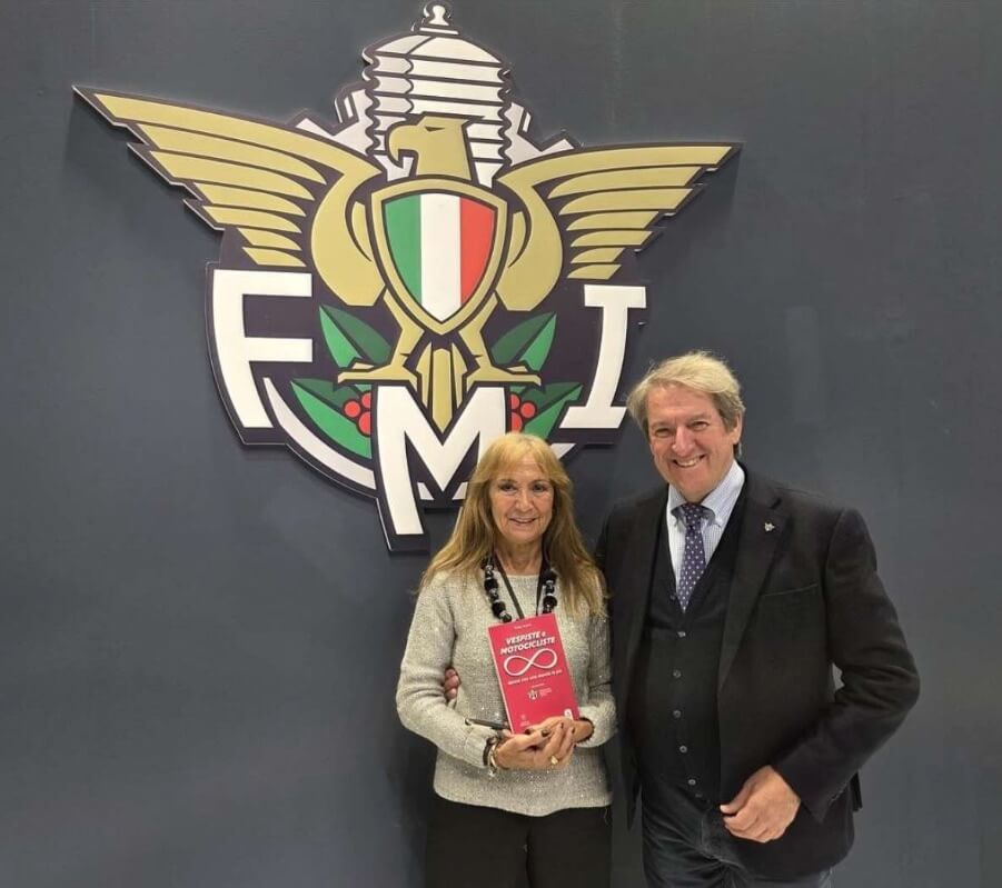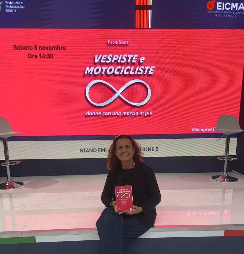 Novembre 2025 (G.T.) – Una location prestigiosa e perfetta: sabato 8 novembre 2025, nello spazio FederMoto al salone internazionale Eicma 2025 (Milano Rho Fiera), è stato presentato in anteprima nazionale ‘VESPISTE E MOTOCICLISTE: donne con una marcia in più’, il nuovo libro polisensoriale, con video e foto, di Paola Scarsi (Erga edizioni). Il libro ha il Patrocinio della FMI - Federazione Motociclistica Italiana. Alla presentazione, insieme con l’autrice che ha dialogato con Francesco Dragonetti, responsabile comunicazione FMI, hanno partecipato numerose protagoniste del libro. Momenti di gioia e anche di commozione durante l’incontro tra queste donne, accomunate da una grande passione, quella di viaggiare in libertà in sella ad una ‘due ruote’, e dal desiderio di poterla condividere con le altre donne. E, perché no, anche con tanti appassionati di scooter e moto.