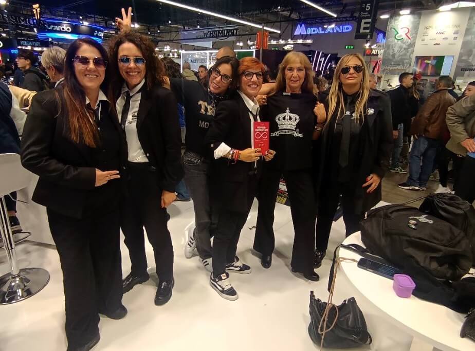 Concludo dicendo che, quando a Milano mancavano pochi minuti alla presentazione del libro a Eicma, sono arrivate tante partecipanti (quelle in foto e qualcun’altra ancora) che, praticamente, conoscevo solo via telefono e whatsapp e la cosa mi ha quasi commossa: perché erano li per festeggiarMI ma anche per festeggiarSI. Si, io le ho raccolte in un unico libro, ma la nostra era gioia di essere insieme e di poter dire ‘Vedi? siamo qui: come ce l’ho fatta io puoi farcela anche tu!’”.