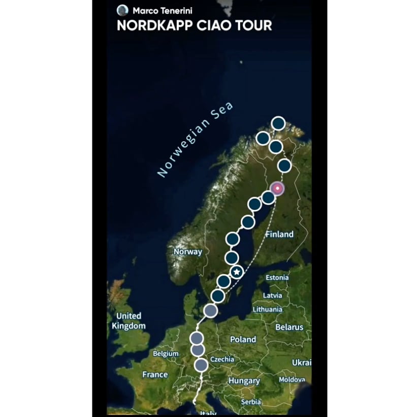 Marzo 2023 (G.T.) – “Ciao, mi chiamo Marco Tenerini ho scritto il libro OSTINATO per raccontare la mia avventura in solitaria – ‘Da Viareggio a Capo Nord in Ciao, inseguendo l’aurora boreale’. Ed ora vi racconto come è nata. Un giorno ho creato una lista dei desideri, tra questi c’era vedere l’Aurora Boreale. Questo stupefacente fenomeno naturale si manifesta principalmente al di sopra del Circolo Polare Artico nei periodi compresi tra ottobre e marzo. Volevo valorizzare questo desiderio rendendolo un’avventura, in modo che lasciasse in me una traccia indelebile. Ho infatti imparato da un mio precedente viaggio sul Cammino di Santiago, (con una bicicletta Graziella! ndr), che senza fatica non c’è felicità. Ho scelto Capo Nord come meta e deciso di provare a percorrere i 5.000 km che la separano da casa mia, Viareggio, con un ciclomotore Piaggio Ciao del 1984 a cui ho dato il nome Ostinato.