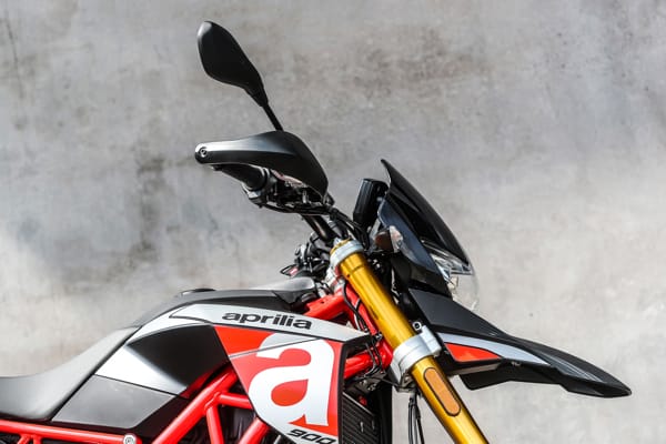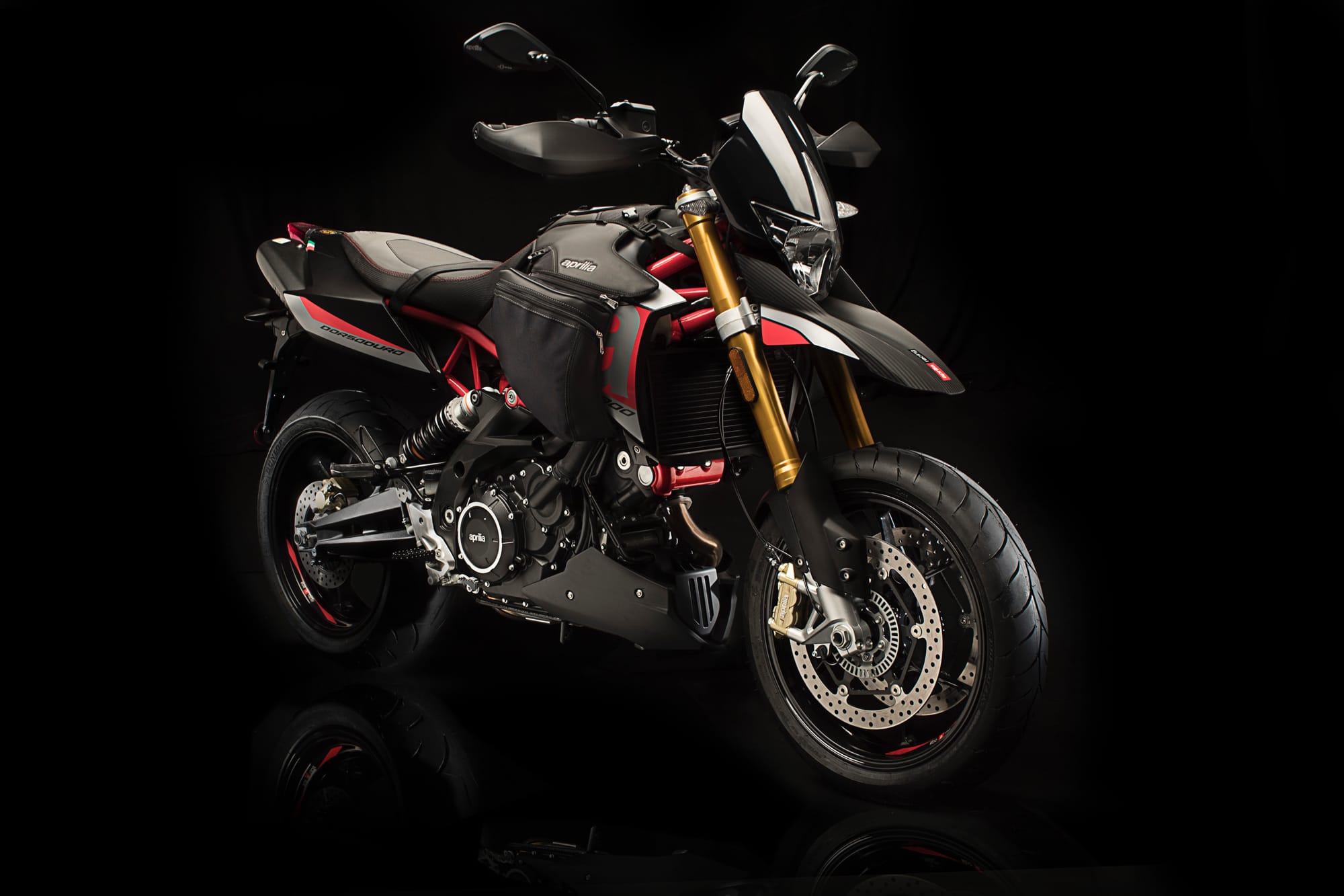 LINEA ACCESSORI ORIGINALI APRILIA: PER LO SPORT E PER IL TURISMO. Anche per Dorsoduro 900 è disponibile un’ampia gamma di accessori dedicati allo sport e al turismo. I primi sono in grado di sottolinearne l’animo sportivo e l’inconfondibile carattere racing di Aprilia: componenti in alluminio ricavati dal pieno, come cover serbatoio olio freno e frizione, leve freno e frizione, e specchi CNC dall’elevato livello di finiture. Gli accessori dedicati al turismo sono capaci di elevare il comfort di Dorsoduro 900, come la sella comfort, le valigie laterali, le borse laterali serbatoio.