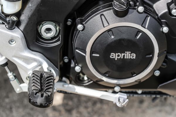 PIU’ PRESTAZIONI DAL RINNOVATO V2. Prendendo come base il motore bicilindrico a V di 90° di 750 cc, conosciuto e apprezzato per il suo carattere e la sua affidabilità, Aprilia ha sviluppato una nuova unità di 900 cc, con l’obiettivo principale di ottenere più coppia e prontezza ai bassi e medi regimi di rotazione, per un’esperienza di guida esaltante. Il V2 di Aprilia è stato perciò rivisto in numerosi dettagli per il raggiungimento di tale fine. La nuova cilindrata è ottenuta aumentando la corsa da 56,4 mm a 67,4 mm e lasciando invariato l’alesaggio (92 mm). In questo modo la potenza massima arriva a toccare i 95,2 CV a 8.750 giri/min, ma quel che è più importante è il dato di coppia massima, il quale passa da 82 Nm a 4.500 giri/min del V2 di 750 cc a 90 Nm a 6.500 giri/min del nuovo V2 di 900 cc, valore quest’ultimo davvero elevato e al top della categoria. Da notare che, malgrado il picco massimo di coppia del nuovo V2 di 900 cc sia raggiunto a un regime di rotazione maggiore, in realtà la curva di coppia è più piatta e sempre superiore al precedente 750 cc. Questo intervento ha permesso di aumentare la prontezza in accelerazione e in ripresa, a vantaggio del divertimento nella guida, senza limitare minimamente la proverbiale affidabilità del propulsore.