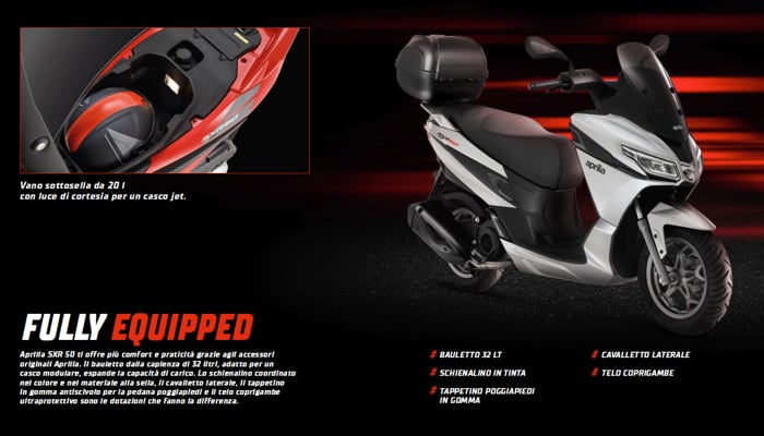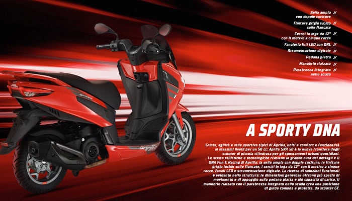 APRILIA SXR 50: PICCOLA CILINDRATA, GRANDE GRINTA. Aprilia SXR 50 è lo scooter urbano capace di unire il comfort di ultima generazione, l’efficienza nei consumi e il carattere grintoso di Aprilia. E’, quindi, un modello adatto anche ai più giovani, grazie alla sua agilità, ottima tenuta di strada e competitivo rapporto qualità-prezzo. Dinamico e funzionale, dalle molte qualità. Da scoprire qui: