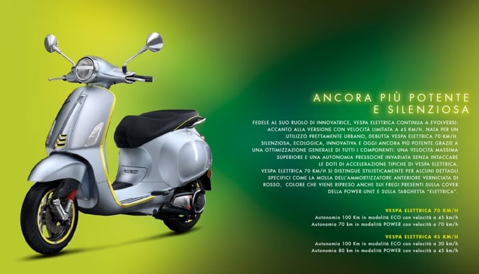 Febbraio 2020 – Vespa Elettrica: silenziosa, connessa, personalizzabile. La migliore tecnologia non è mai stata così cool. Tutti i valori di Vespa si realizzano in Vespa Elettrica, ora anche nella nuova versione da 70 km/h. Qui le immagini, tratte dalla nuova brochure Vespa Elettrica 2020.