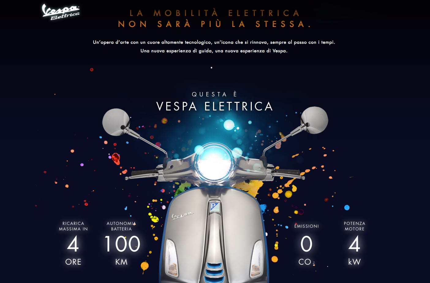 Vespa Elettrica nasce come icona contemporanea della tecnologia italiana nel mondo: è sinonimo di connettività avanzata e silenziosità, personalizzazione e accessibilità, rispetto dell’ambiente e unicità di stile, valori che sono sempre appartenuti a Vespa e che oggi, in Vespa Elettrica trovano ancora una volta totale realizzazione, confermando Vespa come brand da sempre avanti nel tempo rispetto al proprio mercato.