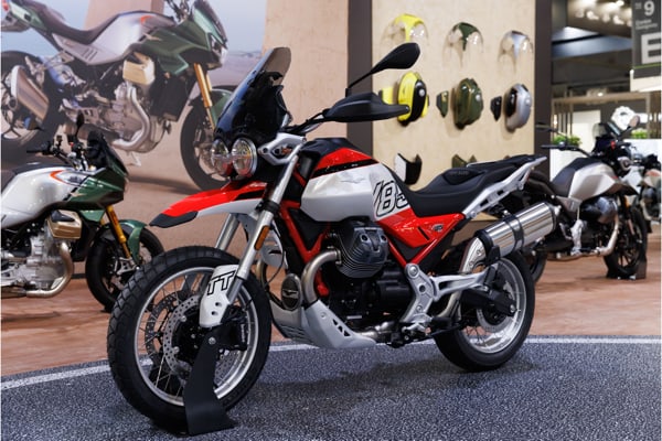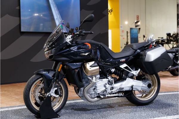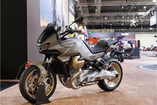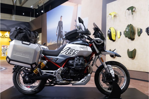 Dal 2024 Moto Guzzi V85 diventa una famiglia, con tre differenti interpretazioni per altrettante necessità di mobilità. V85 Strada è la versione più essenziale e orientata all’uso quotidiano. Si distingue per le ruote in lega (per tutte e tre misure da 19” anteriore e 17” posteriore) con pneumatici stradali, per il parafango anteriore basso e per i tre Riding Mode (Strada, Pioggia, Sport) che gestiscono ABS, Traction Control e mappe motore. V85 TT rappresenta l’essenza della motocicletta iconica di Moto Guzzi dedicata al turismo. Si distingue per le ruote a raggi tubeless con pneumatici on-off, per i 4 Riding Mode (Strada, Sport, Pioggia e Off-Road) che gestiscono al meglio i controlli elettronici (tra cui il Cornering ABS), grazie alla presenza della piattaforma inerziale a sei assi. Di serie è presente anche la protezione motore e il maniglione del passeggero entrambi in alluminio, oltre ai paramani e alla regolazione del precarico idraulico della molla dell’ammortizzatore.