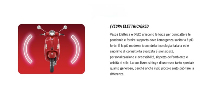 VESPA ELETTRICA, MODERNA ICONA TECNOLOGICA, SOSTIENE LA LOTTA DI (RED) CONTRO LE PANDEMIE. UN MESSAGGIO FORTE DI SENSIBILIZZAZIONE, RESPONSABILITÀ E UNITÀ.