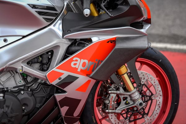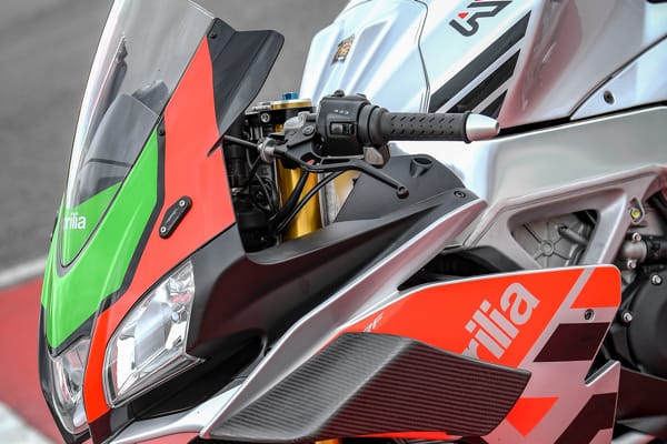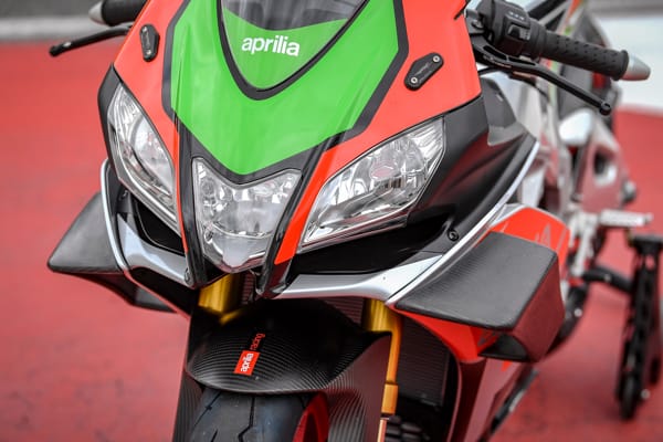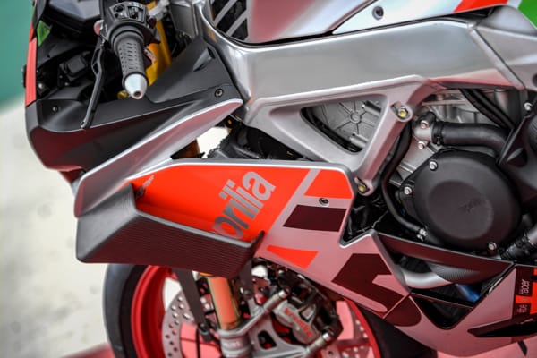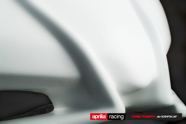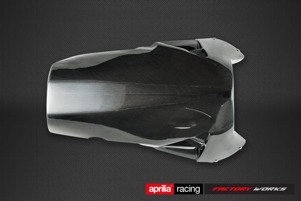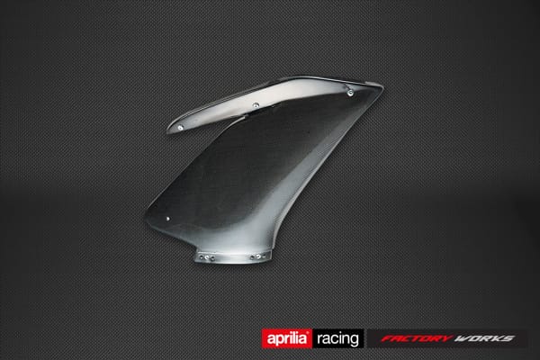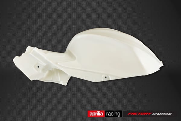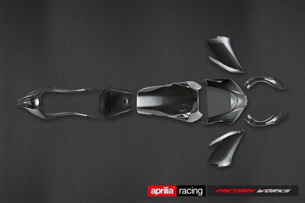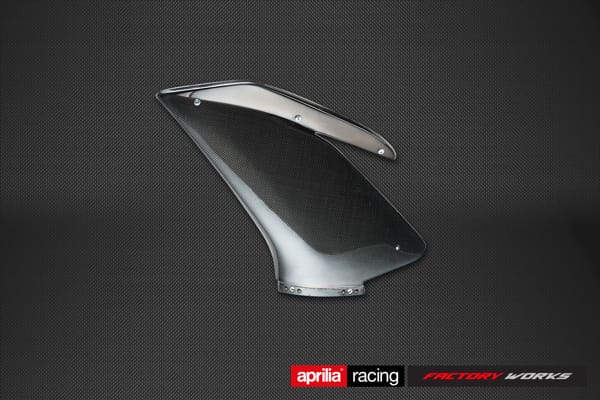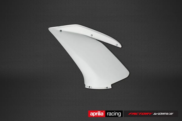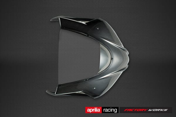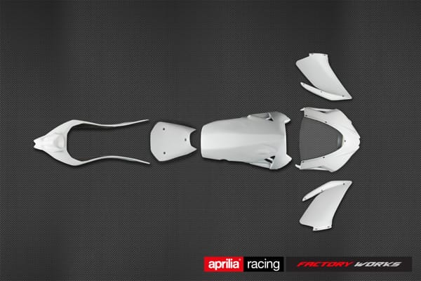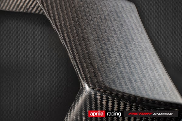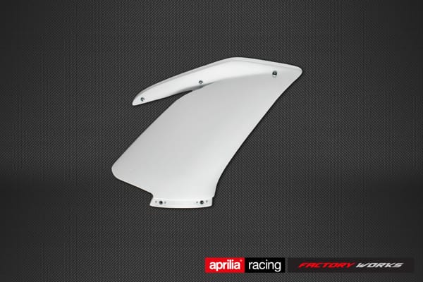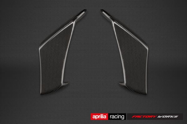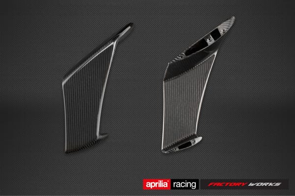 Il nuovo kit Factory Works può essere ulteriormente arricchito da un set di fiancate dotate di winglets, appendici aerodinamiche che contribuiscono ad apportare benefici in termini di stabilità della moto. Si tratta di una tecnologia sviluppata da Aprilia Racing sul prototipo RS-GP impegnato nel Campionato del Mondo MotoGP e che, per la prima volta in assoluto, è resa disponibile anche per i clienti Factory Works.