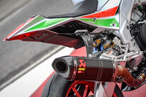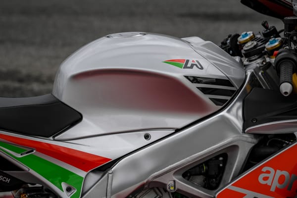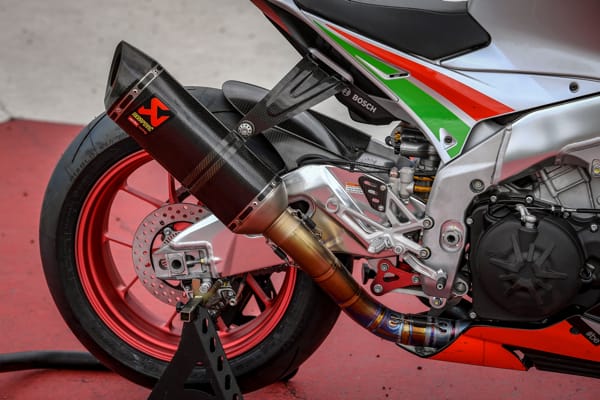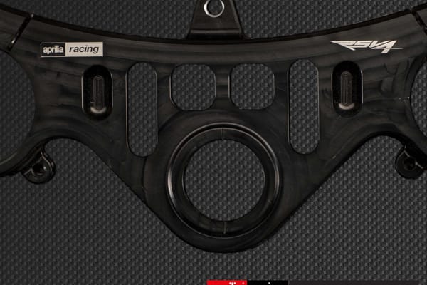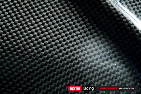 L’esperienza di Aprilia Racing si misura anche attraverso mirati interventi di alleggerimento, a vantaggio soprattutto della maneggevolezza, già molto elevata sul modello RSV4 di serie. Essi consistono nell’installazione di una batteria al litio e di un nuovo serbatoio del carburante, della stessa forma e materiale di quello originale ma realizzato con un affinato metodo di produzione che permette un risparmio di peso di circa 1,5 Kg. L’impianto di scarico completo Akrapovic, i diversi dettagli in fibra di carbonio e la piastra di sterzo superiore ricavata dal pieno permettono di ridurre il peso complessivo di RSV4 di circa 10 Kg.