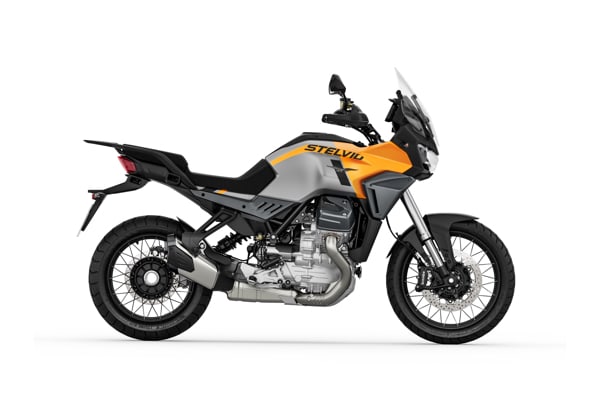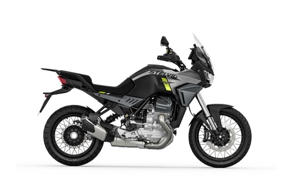 Versioni e colori. Moto Guzzi Stelvio è disponibile con o senza PFF Rider Assistance Solution. Le varianti cromatiche sono due, entrambe opache: Giallo Savana, che prevede una tonalità giallo scuro sulla parte anteriore del serbatoio e sui fianchetti e il più elegante Nero Vulcano, dominato dal binomio nero/grigio, con alcuni richiami in giallo su serbatoio e fianchetti.