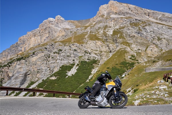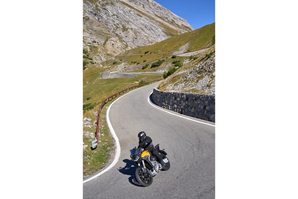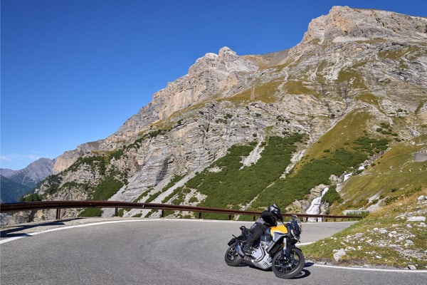 Il piacere di guida “sale in vetta”. Essere perfetta in ogni condizione di utilizzo, confortevole e inarrestabile nel turismo avventuroso e facile nell’uso quotidiano, nonché appagante quando si cercano emozioni nella guida sportiva su strada. Si chiama versatilità e Moto Guzzi Stelvio è il perfetto esempio di come sia possibile confezionare una moto sola con tante anime. Il comune denominatore è il piacere di guida e il feeling con la ruota anteriore che è capace di restituire, frutto di una cultura progettuale dei maestri telaisti di Mandello apprezzata in tutto il mondo.