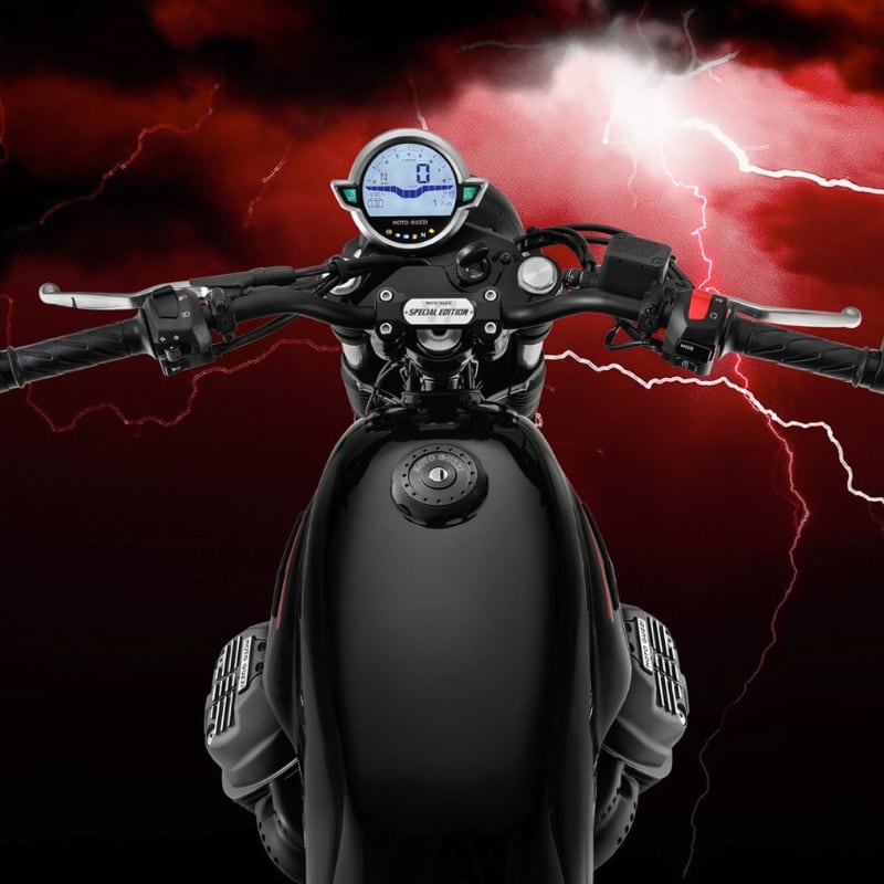 Raffinatezza e sportività si fondono in questa versione speciale di V9 Bobber, caratterizzata come sempre da una posizione di guida d’impronta sportiva, attiva e decontratta e mai sacrificata grazie allo spazio a bordo ideale anche per i motociclisti di statura più elevata. Qualità che, assieme al peso complessivo contenuto in soli 210 kg in ordine di marcia e all’altezza della sella da terra di soli 785 mm, evidenziano bene il livello elevato di comfort, controllo e piacere di guida di una moto veramente unica e inconfondibile.