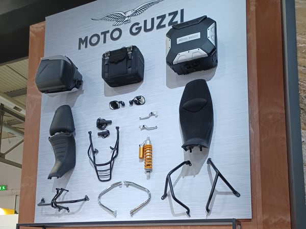 Il carattere sportivo è assecondato da una ciclistica compatta e maneggevole, mentre l’attitudine da viaggiatrice è garantita dall’elevato comfort regalato dalla generosa sella e dalla posizione di guida attiva e decontratta. La tecnologia Moto Guzzi interviene ad aumentare il comfort e la protezione dall’aria, grazie al cupolino regolabile elettricamente e con l’adozione per la prima volta al mondo di un sistema di aerodinamica adattiva che regola automaticamente la posizione dei deflettori presenti ai lati del serbatoio in dipendenza della velocità e del Riding Mode selezionato. La dotazione elettronica è di prim’ordine e prevede l’acceleratore elettronico Ride by Wire per una fine gestione delle prestazioni e dei consumi, l’evoluta centralina di controllo Marelli 11MP, la piattaforma inerziale a 6 assi in grado di gestire al meglio i controlli elettronici, il cruise control, e il Cornering ABS a garanzia della sicurezza attiva in frenata in curva. Quattro sono i Riding Mode a disposizione: Turismo, Sport, Pioggia e Strada ognuno dei quali gestisce 3 differenti di mappe motore, 4 livelli di traction control, 2 livelli di freno motore e (nella versione che le prevede di serie) anche la taratura delle sospensioni semiattive Öhlins Smart EC 2.0, capaci di adattare automaticamente l’idraulica istante per istante al tipo di guida adottata e alle condizioni dell’asfalto per avere sempre il miglior comportamento in qualsiasi situazione.