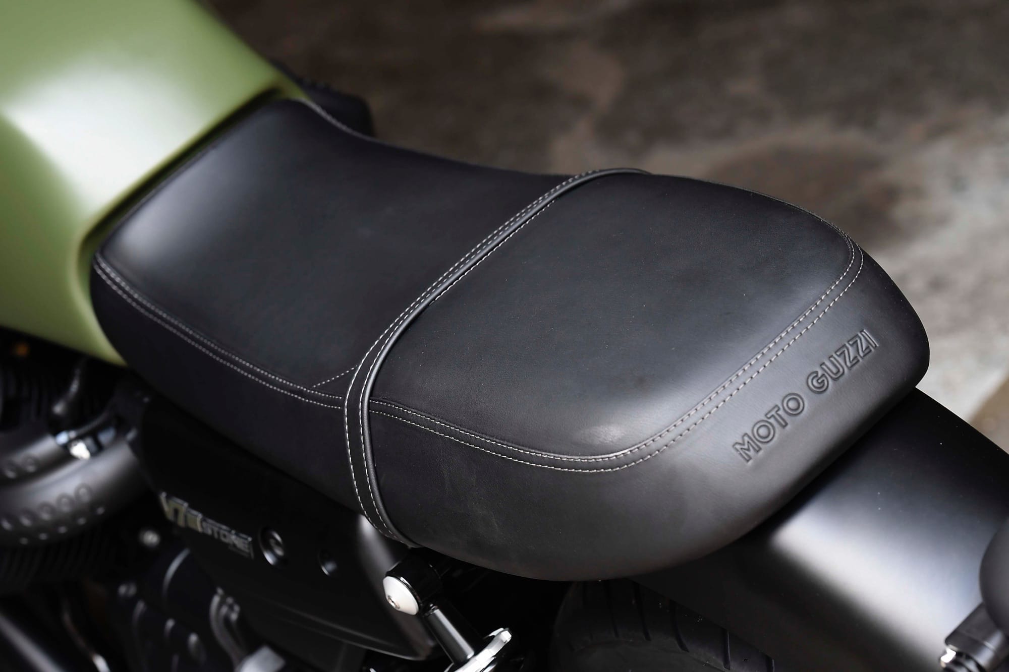 È però disponibile in altre accattivanti tinte satinate, ispirate alle tonalità tipiche degli anni ’70: Nero Ruvido, Azzurro Elettrico, Verde Camouflage e Giallo Energico. Il look totalmente “dark matt” distingue e caratterizza V7 III dalle altre versioni, ma non è la sola differenza. V7 III Stone è l’unica del “poker” ad avere i cerchi ruota a razze e la strumentazione a singolo quadrante circolare. Inoltre il parafango anteriore è stato accorciato per esaltare l’essenzialità di questo modello.