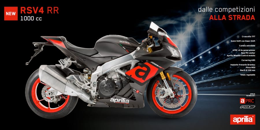 Aprilia RSV4 è la naturale evoluzione di un progetto innovativo, capace in pochi anni di dominare il Mondiale SBK, conquistando sette titoli iridati in sei anni e di vincere al debutto nel Superstock FIM Cup, campionato dedicato alle moto di strettissima derivazione di serie. Acclamata unanimemente dalla critica e desiderata dai motociclisti di ogni angolo del pianeta, RSV4 è da sempre l’indiscussa rappresentante del segmento, il punto di riferimento per sportività e prestazioni, il migliore esempio di quanto sia possibile realizzare attingendo dalla preziosa esperienza di un Reparto Corse vincente come quello di Aprilia che, nella sua giovane storia ha conquistato 54 titoli iridati. Competenze nate in pista e trasferite nel prodotto di serie, per regalare a tutti le stesse emozioni delle motociclette confezionate da Aprilia Racing.
