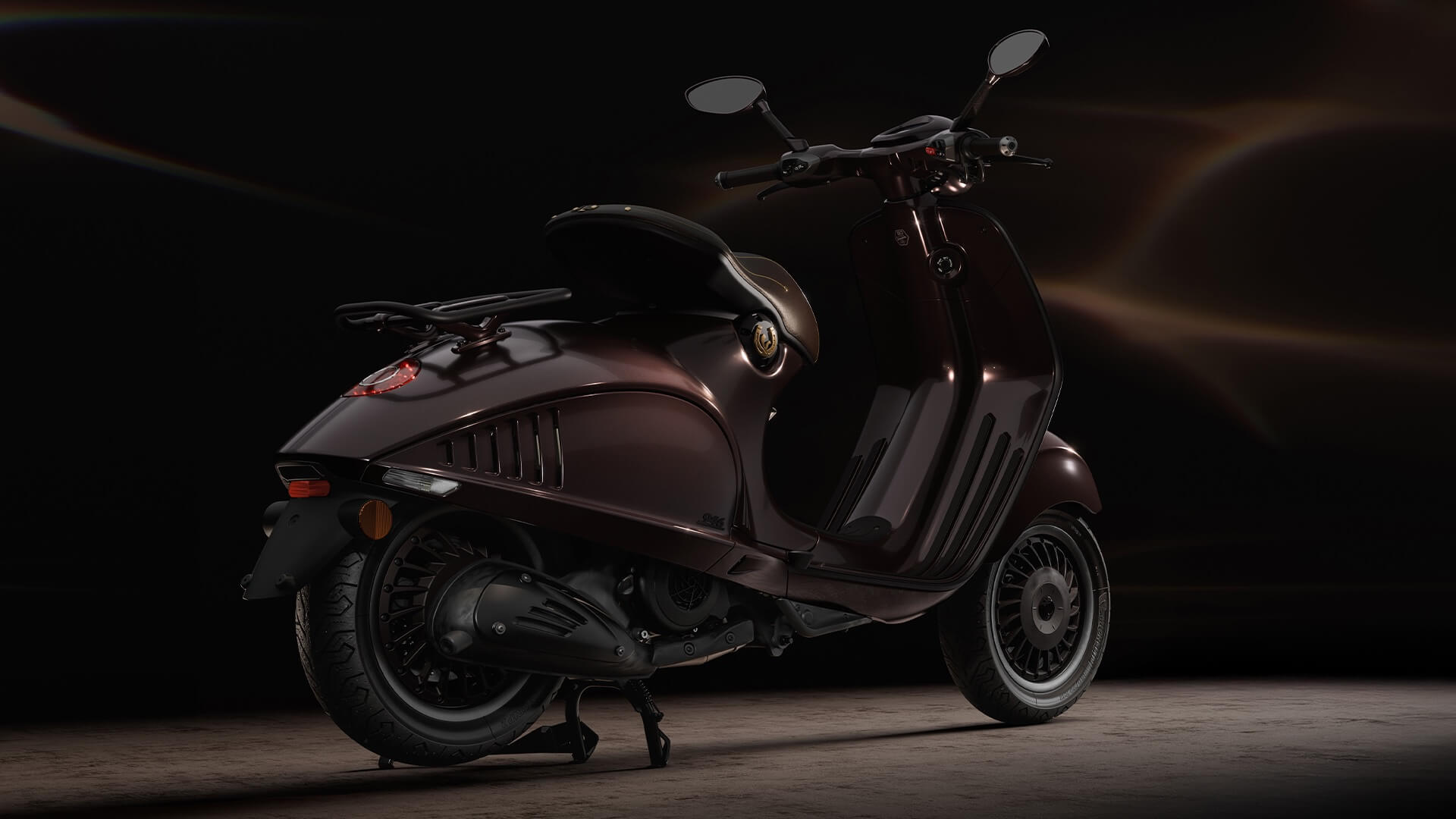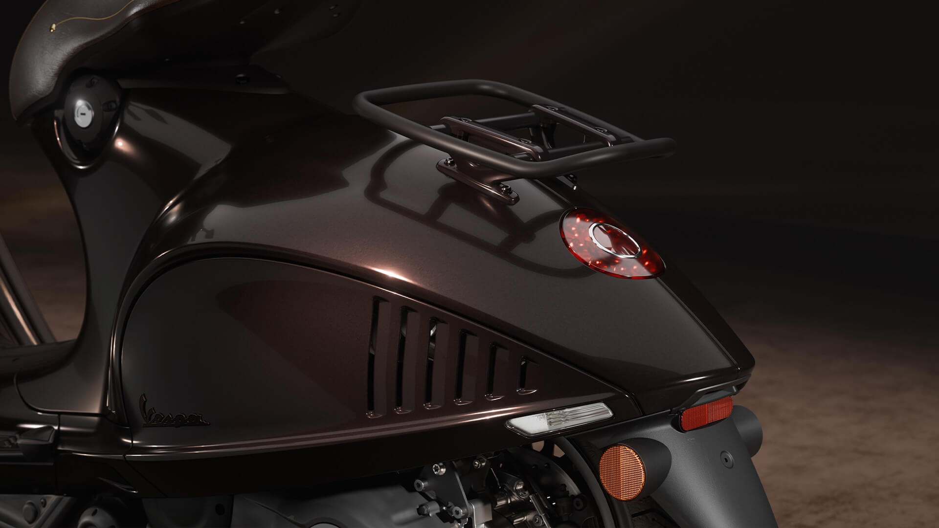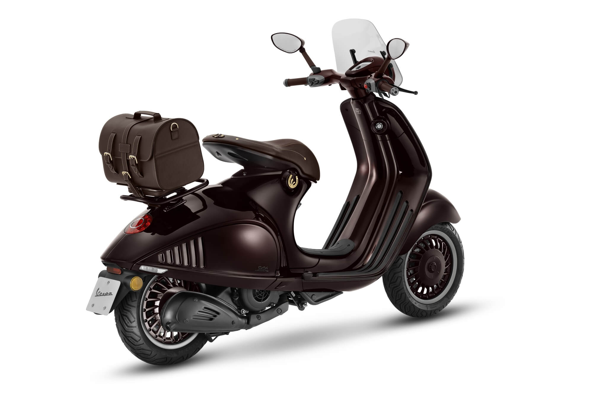 La selezione di accessori accompagna l’edizione limitata con cura e attenzione per riflettere lo stile equestre. Realizzata in Italia con la stessa pelle della sella, la borsa posteriore è pratica ed elegante, mentre il parabrezza presenta supporti in alluminio che ne arricchiscono l’estetica. In linea con Vespa 946 Horse, il casco jet sfoggia la V dorata tridimensionale sulla parte posteriore, confermando una forte identità distintiva.