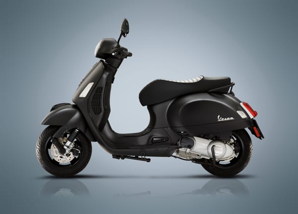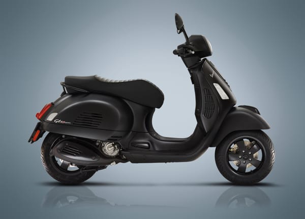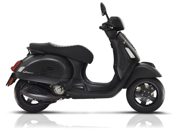 Lo stile “notturno” prevede l’accostamento al nuovo e bellissimo nero opaco della carrozzeria di numerosi particolari in nero lucido, quali gli specchietti, i fregi della tipica “cravatta” sullo scudo anteriore, i terminali del manubrio, il maniglione del passeggero e relative pedane estraibili per la GTS Super Notte. Molto raffinati sono i dettagli come la sella dedicata a ognuno dei modelli e la targhetta con il logo posizionata nel retroscudo. Verniciati in nero lucido sono anche i cerchi ruota e la protezione della marmitta.