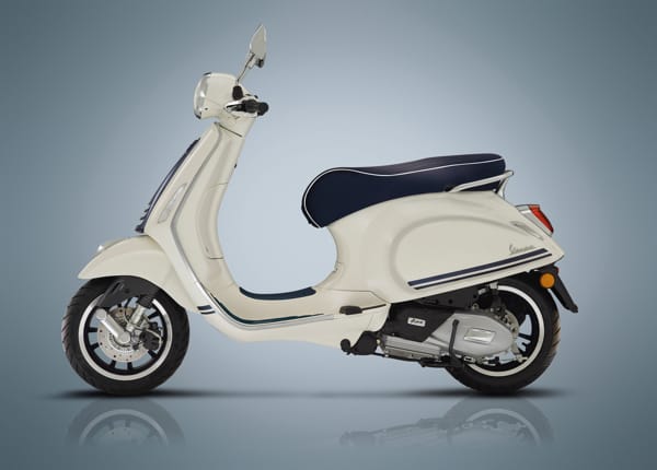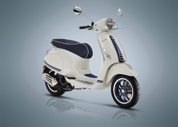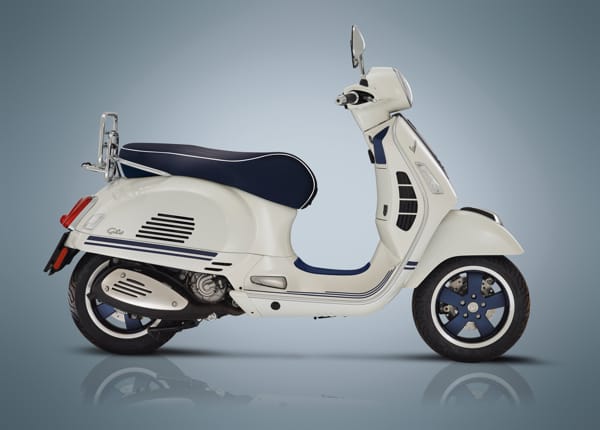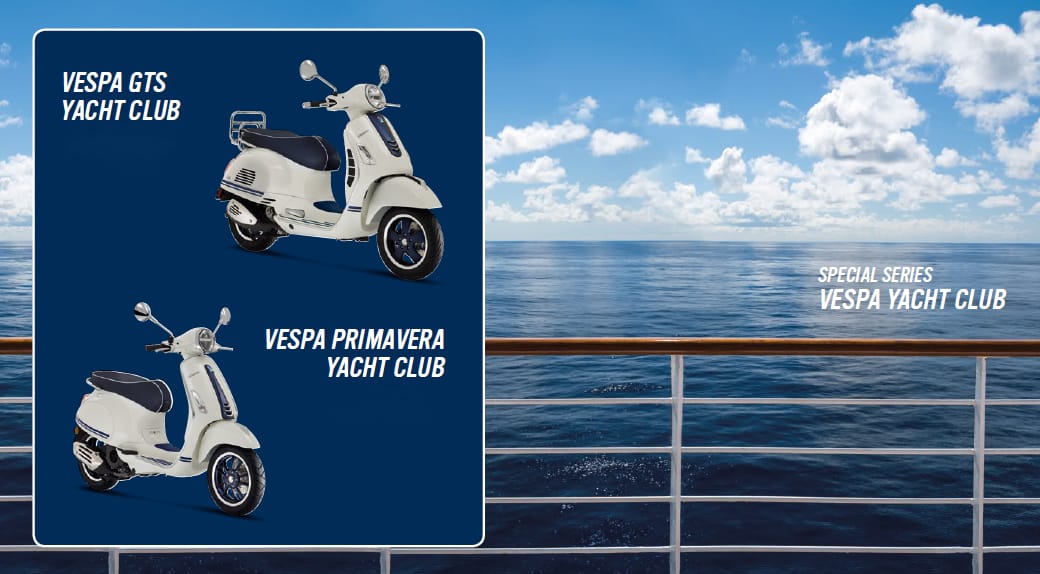 Vespa Primavera Yacht Club, proposta nelle cilindrate 50 e 125 cc, e Vespa GTS 300 Yacht Club si caratterizzano per la colorazione bianca impreziosita da numerosi dettagli in blu. Questi includono, oltre alle speciali grafiche dedicate sulla carrozzeria, i cerchi ruota, verniciati blu opaco con una speciale finitura diamantata, il “cravattino” sullo scudo anteriore, anch’esso blu opaco e con i fregi cromati, e gli inserti in gomma sulla pedana.