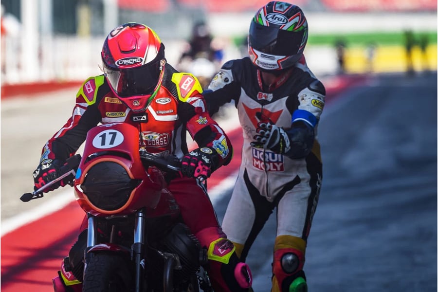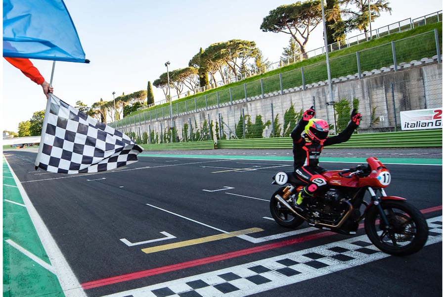 Spinta dal bicilindrico da 850 cc, equipaggiata con il Kit Racing GCorse e con gomme Pirelli Phantom Sportscomp RS, la nuova Moto Guzzi V7 ha alzato l’asticella della competizione, risultando più stabile in frenata e ottenendo ottime punte velocistiche ma, cosa più importante, rimanendo sempre facile, accessibile e adatta a tutti i motociclisti.