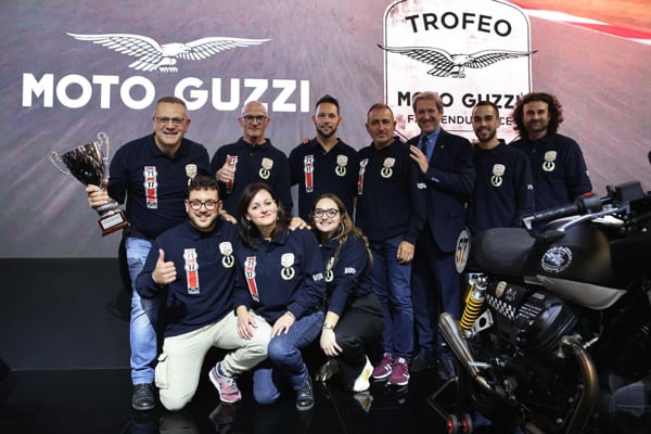 Milano Rho Fiera, 11 novembre 2022 – Sul palco dell’area espositiva del Gruppo Piaggio a EICMA 2022, si sono tenute le premiazioni del Trofeo Moto Guzzi Fast Endurance 2022. Si chiude così la quarta edizione del monomarca dell’aquila, una stagione indimenticabile che ha visto l’esordio della nuova Moto Guzzi V7 850 in versione “racing” e ha registrato il record di iscritti, con ben 36 equipaggi al via.