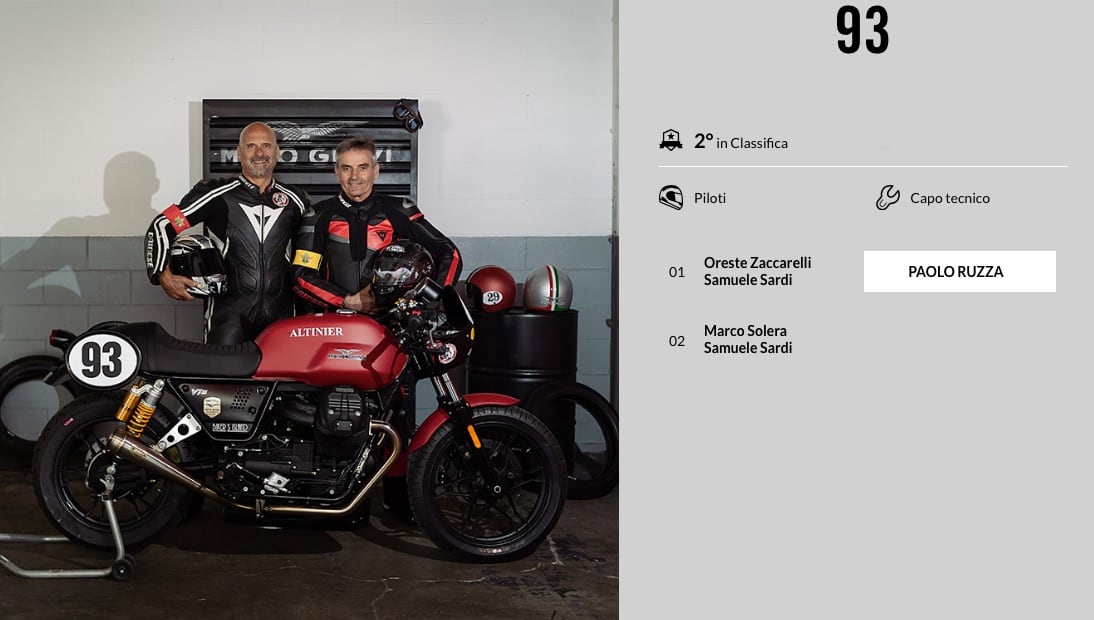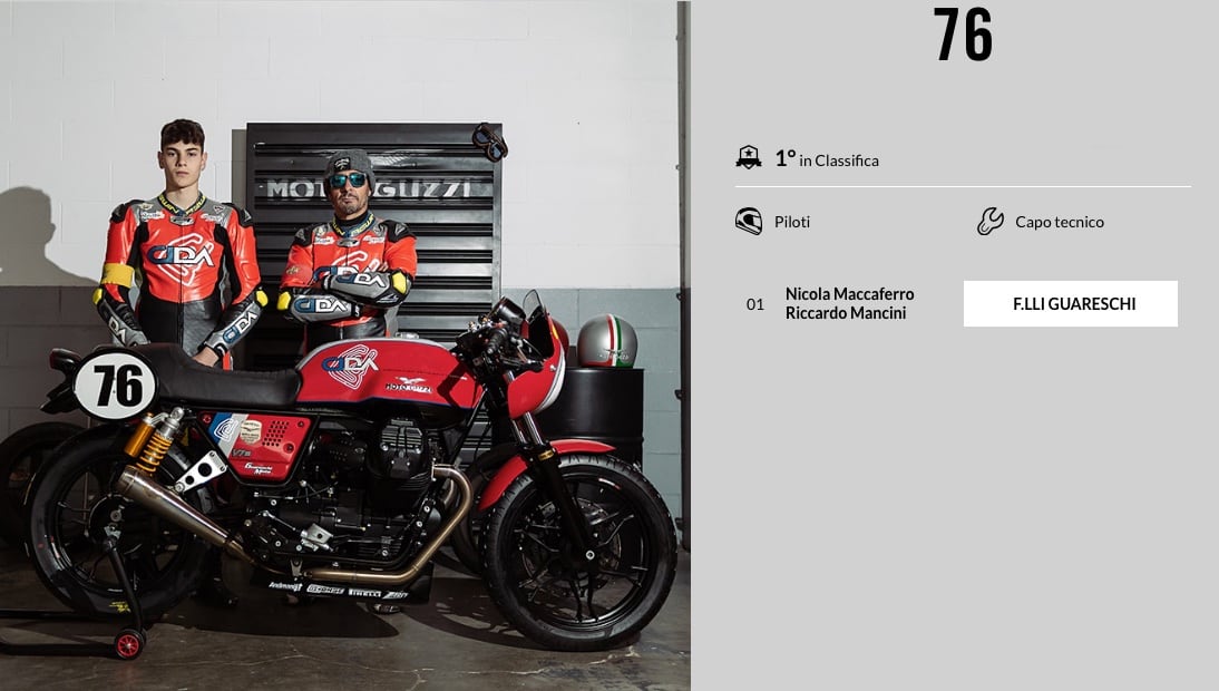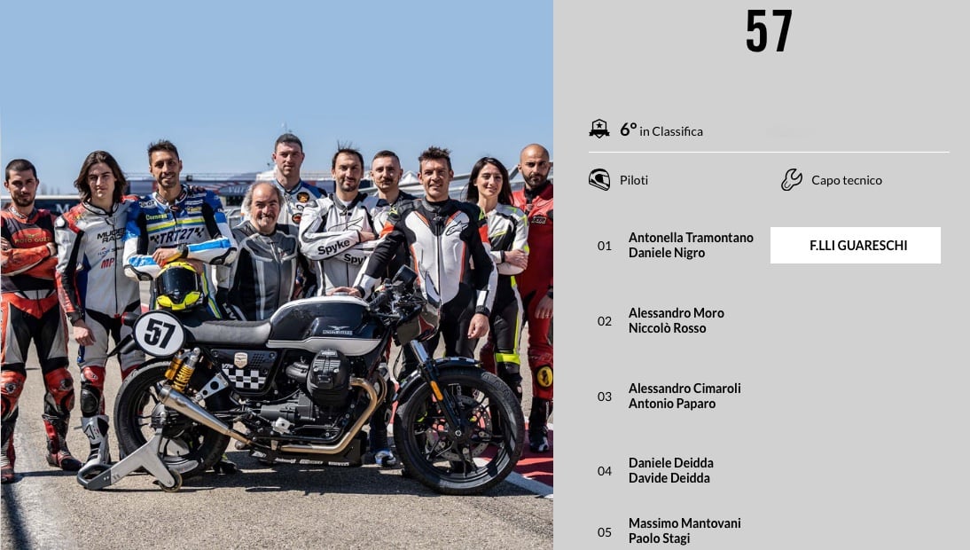 Sul tracciato umbro saranno 38 i piloti al via, suddivisi in 19 coppie in sella alle loro Moto Guzzi V7 III elaborate col Kit Racing GCorse e dotate di gomme Pirelli Phantom Sportscomp RS. Tra di loro ci sarà anche DJ Ringo, al debutto sulla moto del Team Virgin Radio.