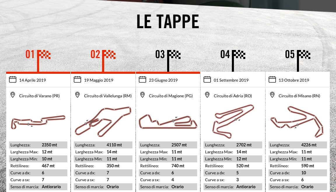 La classifica generale è cortissima e alla vigilia dell’appuntamento umbro vede in testa il Team Circuito Internazionale d’Abruzzo, composto da Nicola Maccaferro e dal sedicenne Riccardo Mancini, con 41 punti (moto n. 76).
