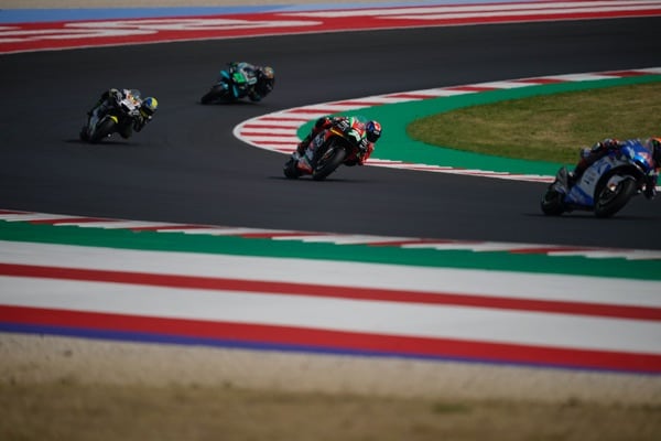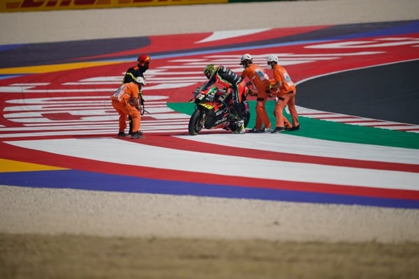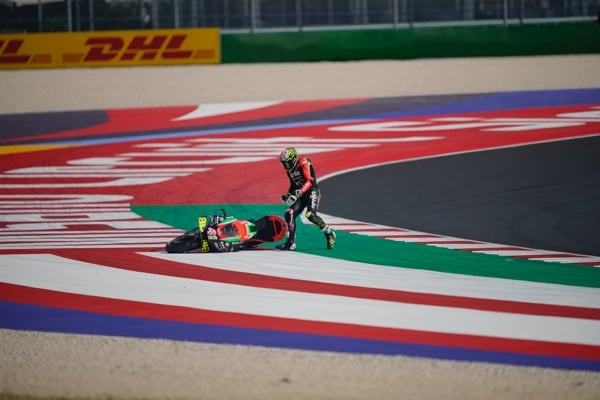 Partito molto bene dalla sesta fila Aleix ha agganciato subito il gruppo dei migliori ma ha perso la moto alla curva della Quercia, la numero 8, coinvolgendo anche l’incolpevole Morbidelli, che gli era all’esterno, costringendolo a una uscita dalla pista.