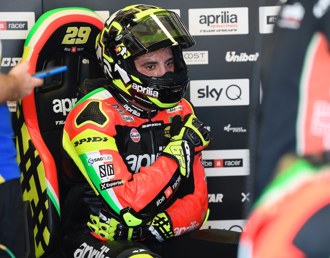 ANDREA IANNONE, INFORTUNATO ALLA SPALLA DURANTE LE QUALIFICHE, NON HA PRESO IL VIA. PROSSIMO GP IL 22 SETTEMBRE AL MOTORLAND DI ARAGONA IN SPAGNA.
