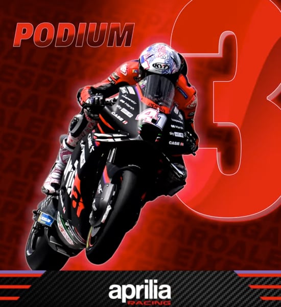 ANCORA UNA GRANDE GARA E PODIO PER ESPARGARÓ E APRILIA. ALEIX GUADAGNA IN UNA GARA 16 PUNTI SUL PRIMO E BALZA A 17 PUNTI DALLA VETTA DEL CAMPIONATO, MENTRE APRILIA È ORA SECONDA NEL MONDIALE COSTRUTTORI. GARA IN SALITA PER MAVERICK VIÑALES CHE, COSTRETTO A PARTIRE INDIETRO E RIMASTO COINVOLTO NELLA CADUTA DEL PRIMO GIRO, HA COMUNQUE COCLUSO A PUNTI. ALEIX: “CHE GARA! CI PROVEREMO E CI DIVERTIREMO, FINO ALLA FINE!”.
