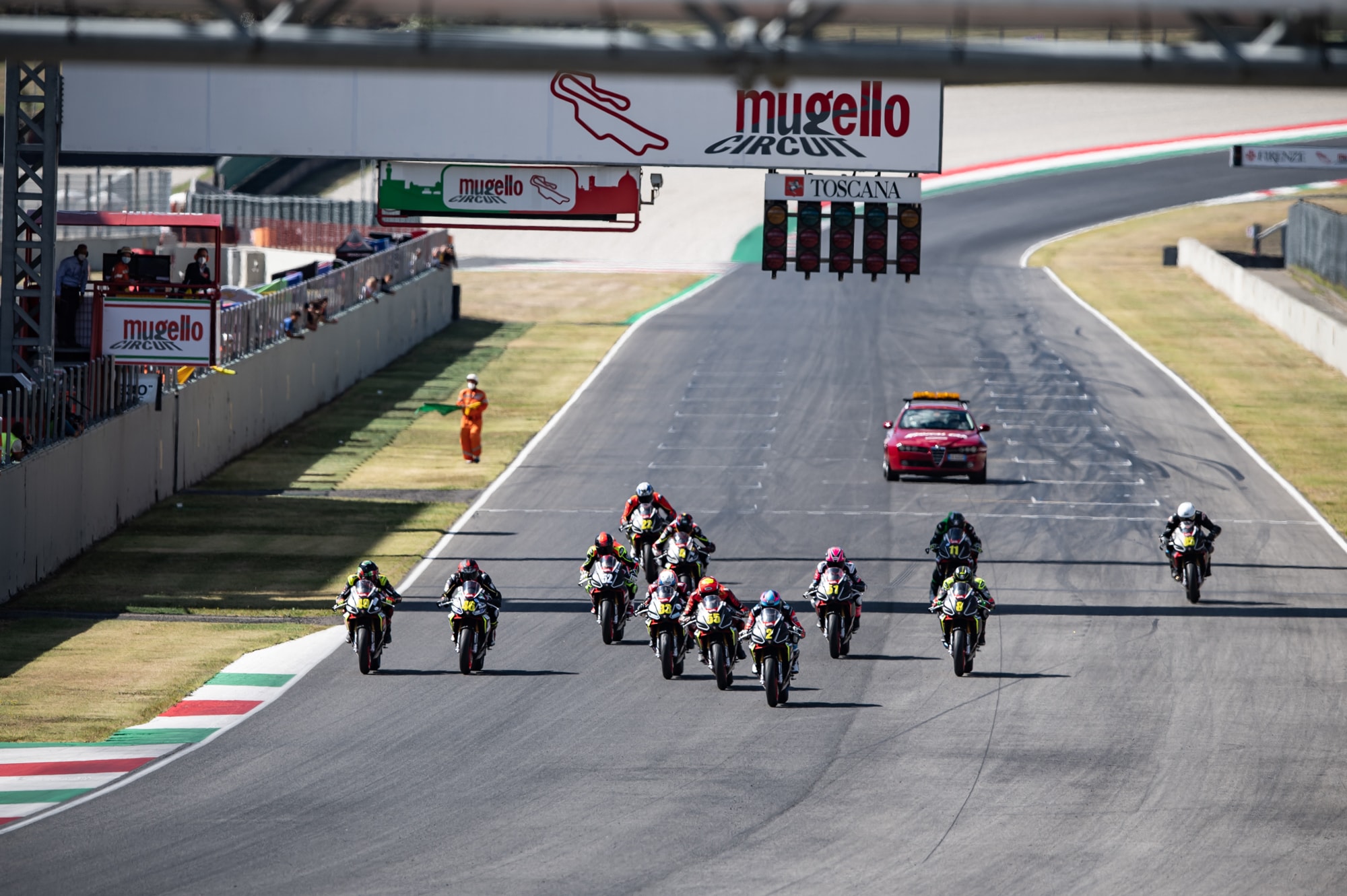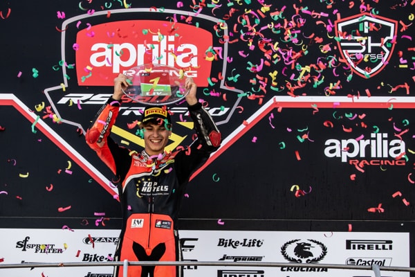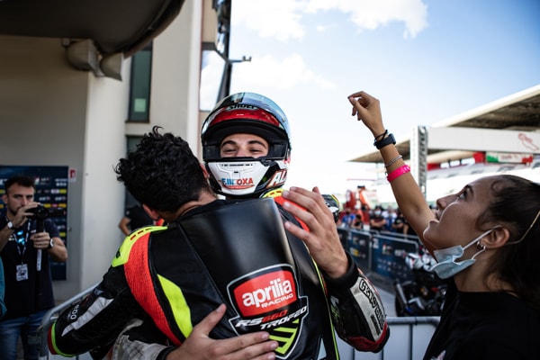 Proprio Arcangeli ha saputo fare la differenza staccando tutti dopo metà gara, imponendo il proprio ritmo gara sino alla bandiera a scacchi. Con la vittoria del Mugello, Alessandro Arcangeli si è dunque laureato matematicamente primo Campione del Trofeo Aprilia RS 660 con 111 punti e una gara di anticipo.