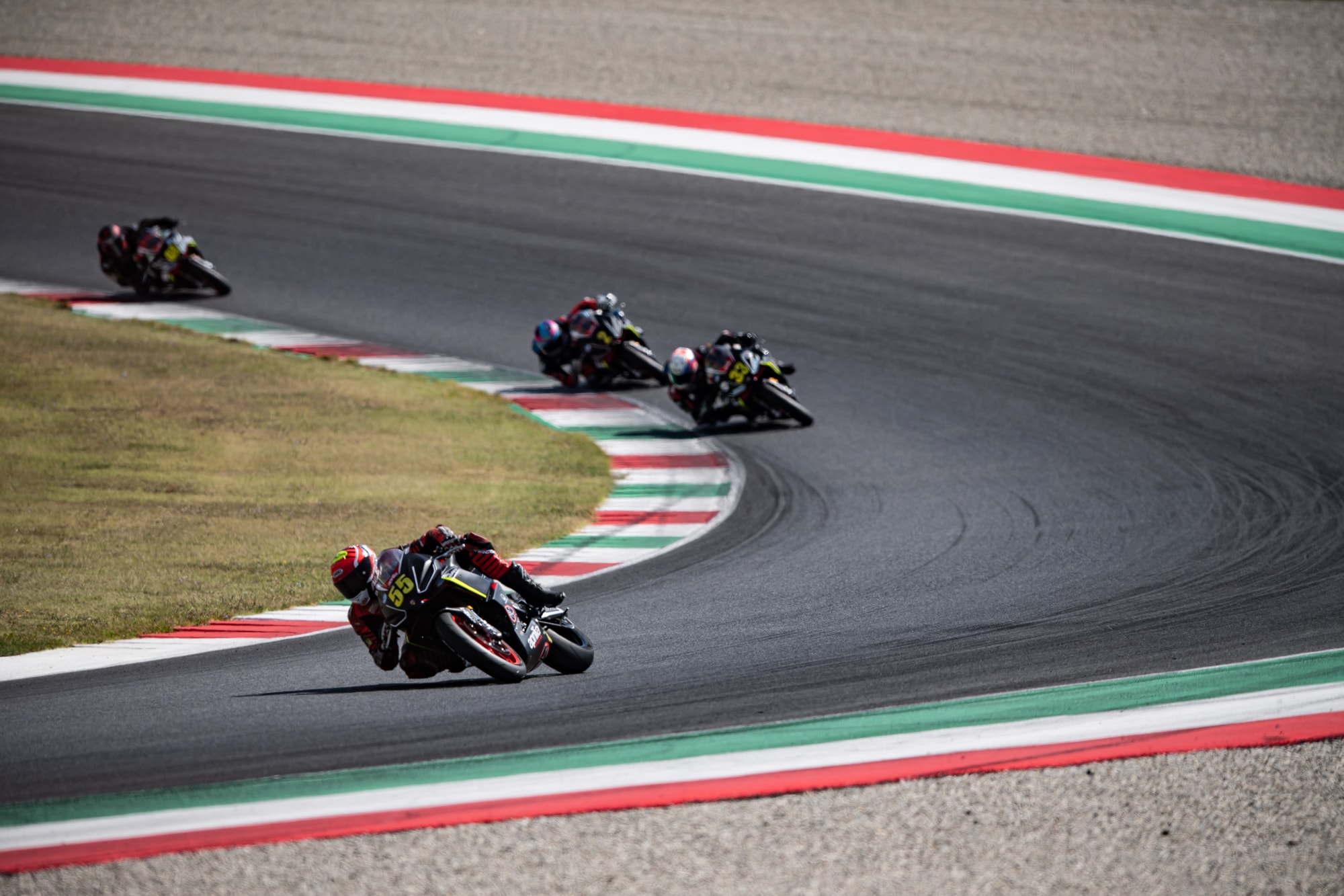 Distacchi minimi per il terzo e quarto posto che danno l’idea della gara fotocopia affrontata da tutti i piloti con Filippo Momesso (moto n. 33) in terza piazza a +0.022sec dal secondo posto, e Francesco Mongiardo (moto n. 49) quarto a +0.035sec dal podio. Si conferma in top five Benny (Benedetto) Rasa (moto n. 45), l’unico a poter tenere viva la lotta al successo fino all’ultimo e ora chiamato a difendere il proprio secondo posto assoluto, sesto Yari Favero in costante miglioramento.