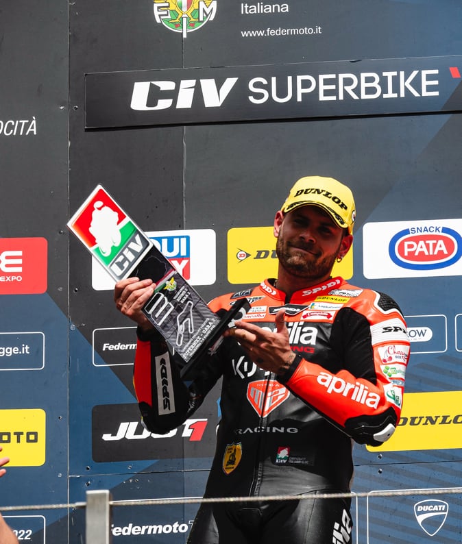 Alessandro Delbianco - CIV Superbike (moto n. 52): “Insieme a Nuova M2 Racing siamo riusciti a fare un gran lavoro ma non posso ritenermi completamente soddisfatto. Mi serve tempo per trovare il setup ottimale perché, a differenza di altri piloti, non sono sempre in pista e con condizioni meteo che cambiano in continuazione diventa tutto più complicato. La mia Aprilia RSV4 era perfetta e abbiamo il potenziale per stare al top, dobbiamo continuare a fare chilometri e provare a stare davanti a tutti. In gara due siamo riusciti a fare un ulteriore step in avanti, anche questo mi da fiducia e penso che riusciremo a migliorare ancora”.
