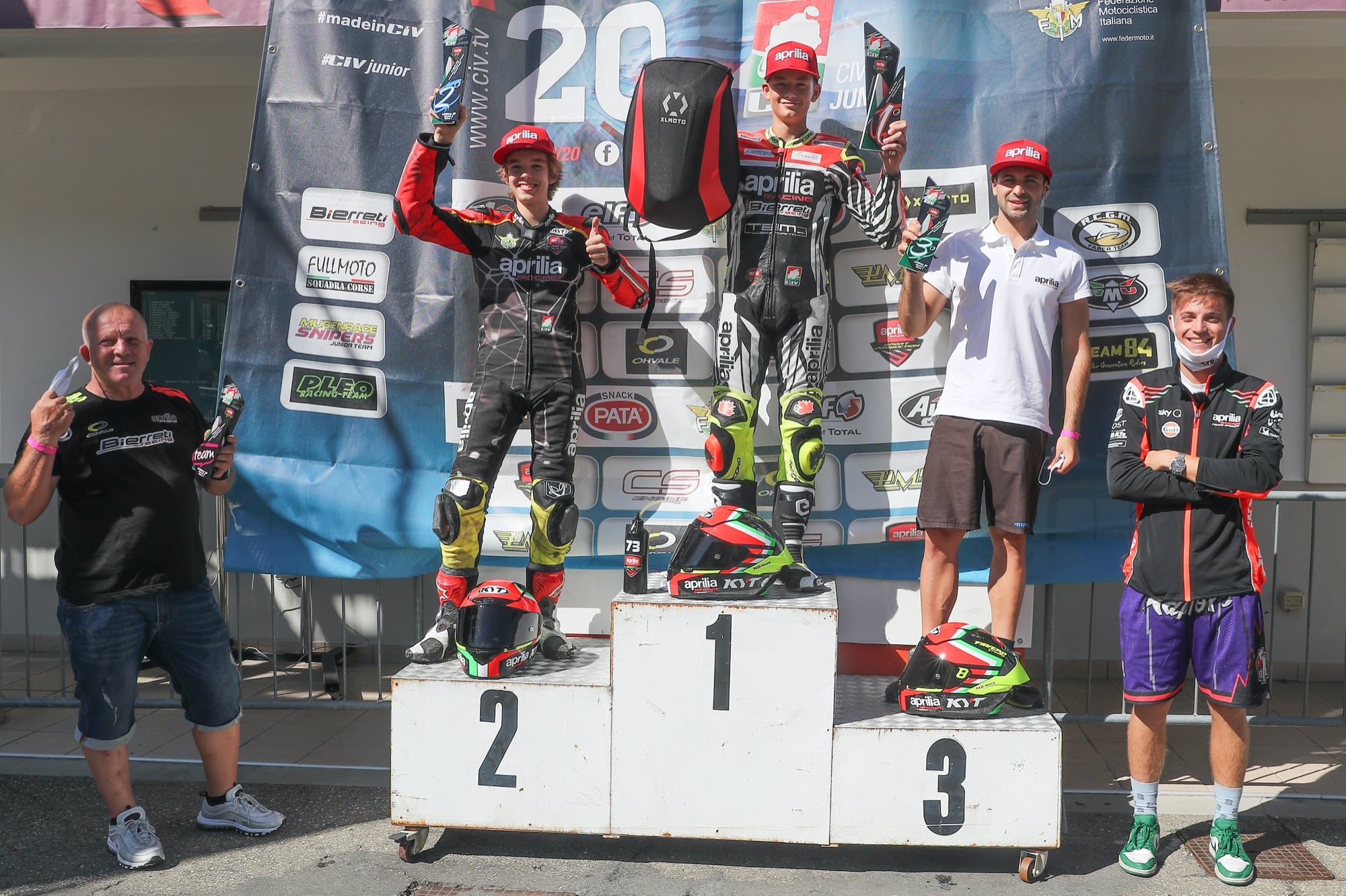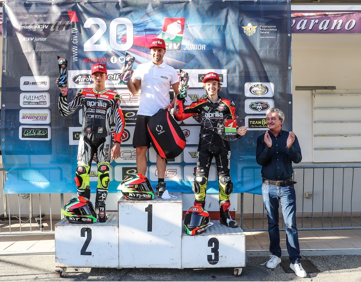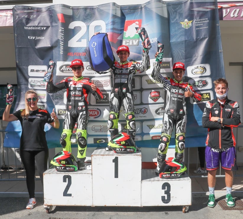 Varano, 30 agosto 2020 – Weekend complicato causa maltempo, che non ha certo frenato l’entusiasmo dei giovani piloti impegnati nel Campionata Italiano FMI Aprilia Sport Production, inserito nel Campionato Italiano Velocità Junior. Sabato la pioggia ha reso impraticabile il circuito di Varano de Melegari, la direzione gara ha quindi annullato per sicurezza tutte le attività in pista.