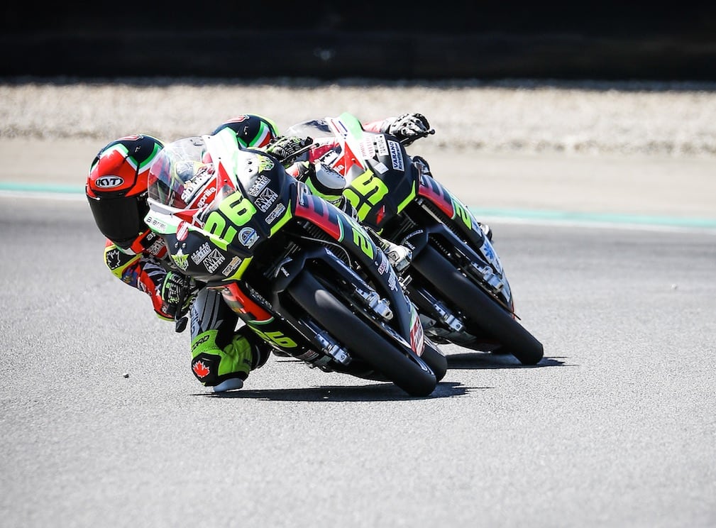 Lorenzo Frasca (moto n. 26) e Leonardo Abruzzo (n. 25), primo e secondo in Gara 1, classe Next Generation.