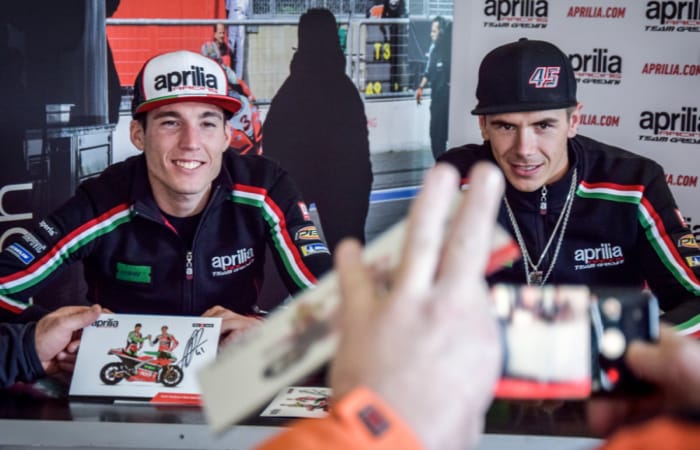 E per finire la serata in bellezza: uno speciale aperitivo nel Paddock presso l’hospitality Aprilia Racing, prima di risalire in sella. Domenica sarà invece la grande giornata della MotoGP, cui assistere insieme tifando Aprilia dalle tribune, sentendosi parte dell’Aprilia Racing Team come nessun altro!”.