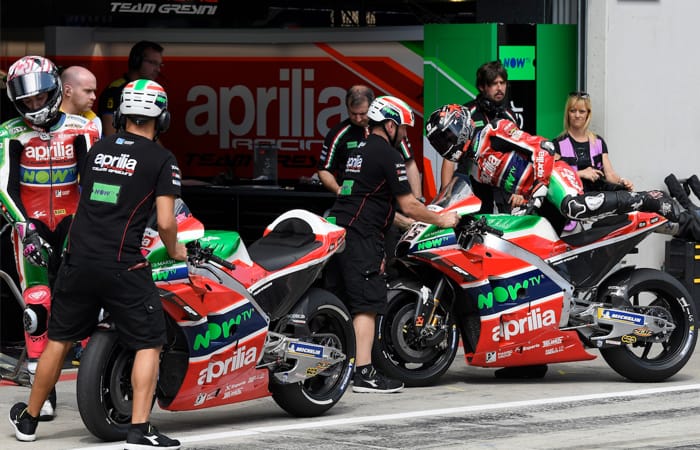 Nel box Aprilia, oltre ai consueti aggiornamenti tecnici, si segnala l'arrivo di Pietro Caprara al fianco di Aleix Espargaró, del quale sarà capotecnico fino a fine stagione.