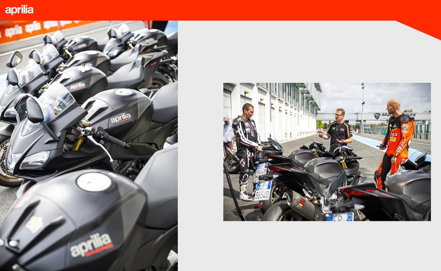 BOX 23 ORGANISATION. Da diversi anni Aprilia France si affida a Box 23 Organization per l'organizzazione degli Aprilia Racers Days. Tutti gli eventi saranno supportati da tecnici e specialisti di prodotto formati da Aprilia per garantire la migliore esperienza di guida.